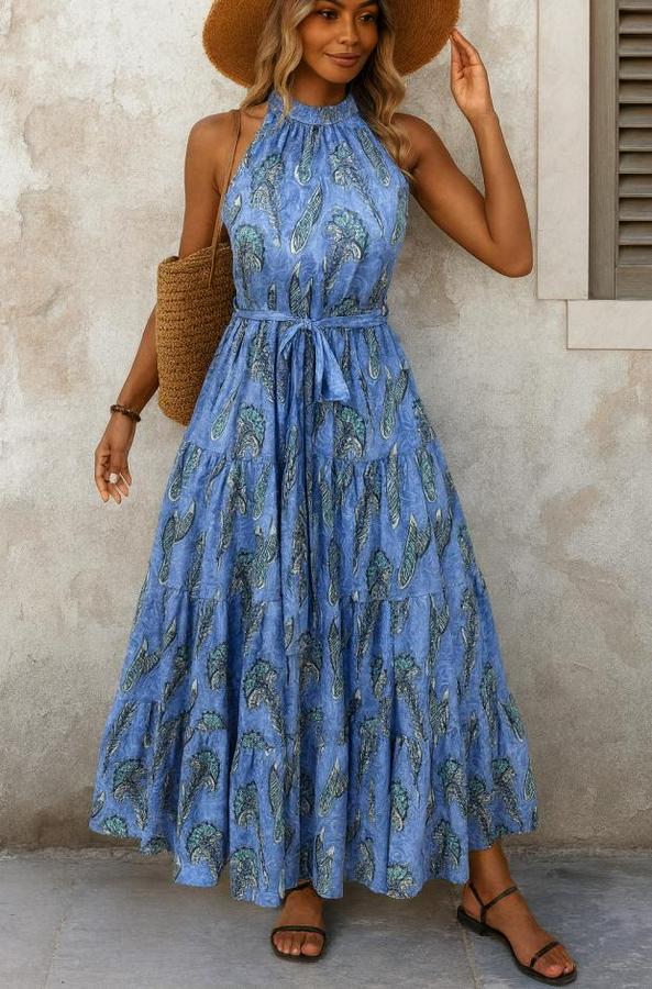 Omuzlardan Açık Boyundan Geçmeli Desenli Süprem Bluz