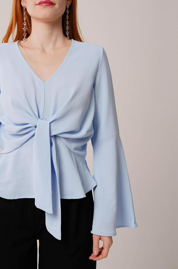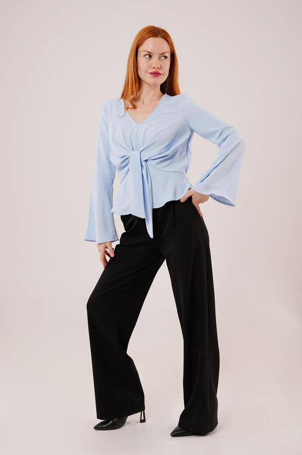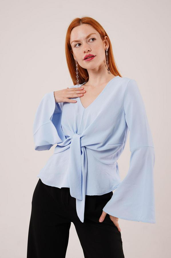 Ön Bağlamalı Volan Kol Bebe Mavisi Bluz