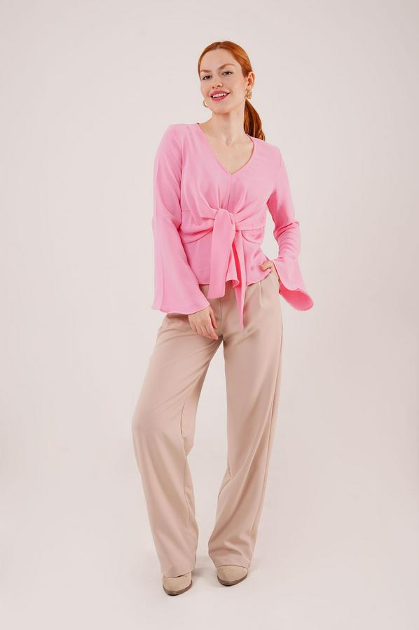 Ön Bağlamalı Volan Kol Pembe Bluz