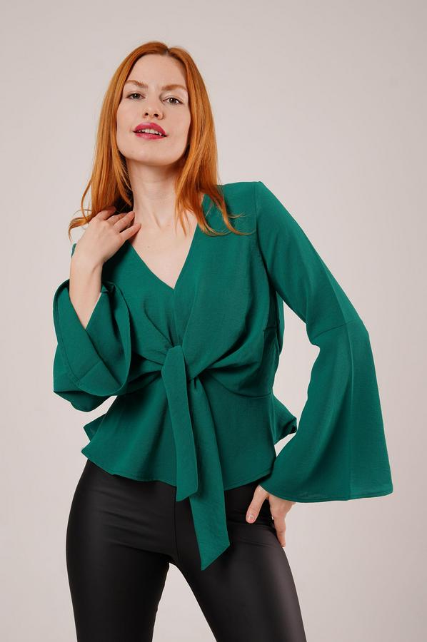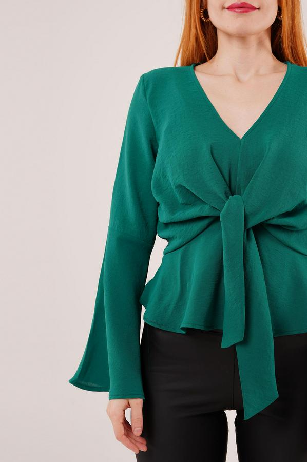 Ön Bağlamalı Volan Kol Yeşil Bluz