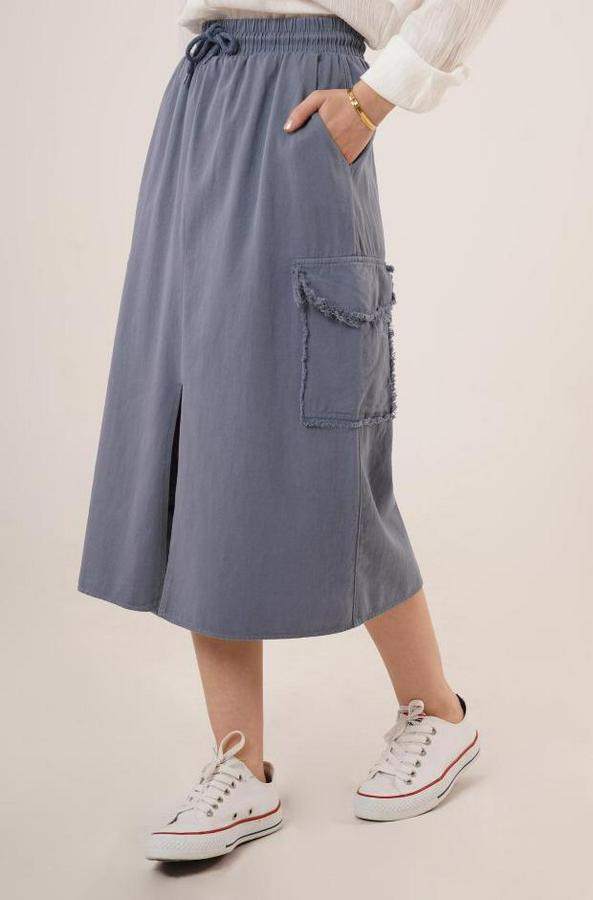 Ön Yırtmaçlı Cep Detaylı İndigo Etek