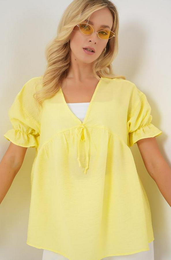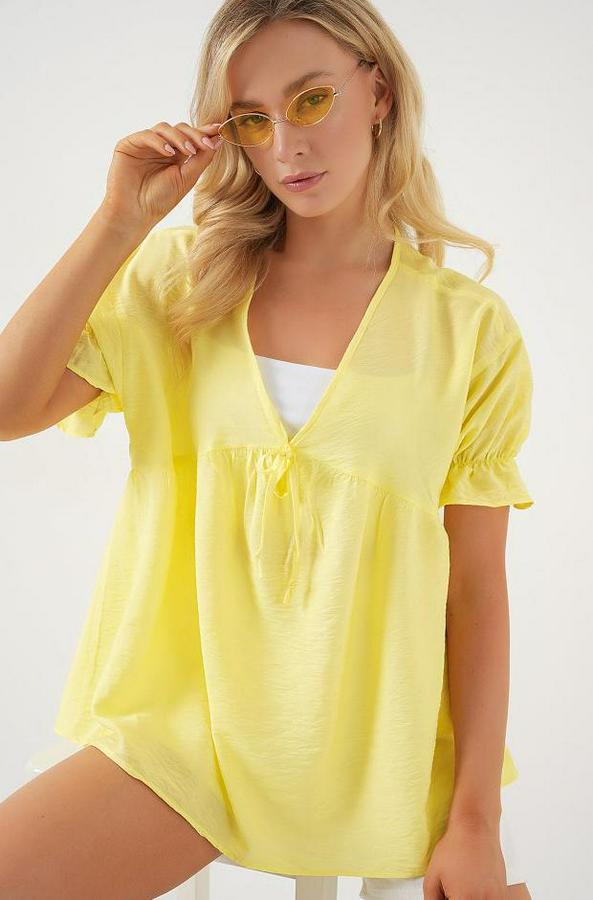 Önü Bağcıklı Kısa Kol Bluz 962 - Sarı