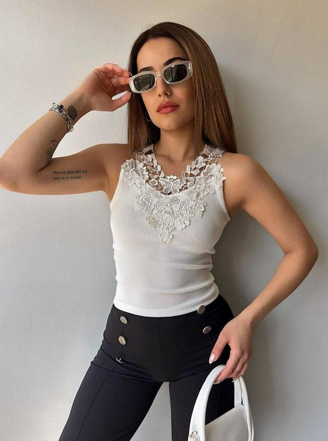 Ottoman Kumaş Dantel Detaylı Bluz