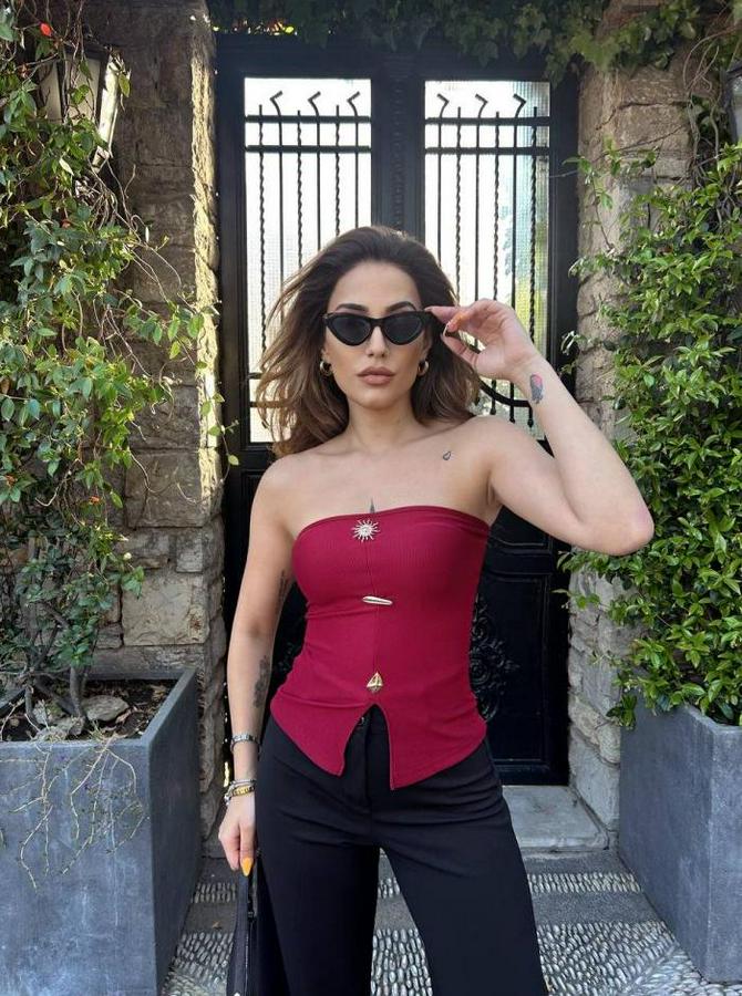 Ottoman Kumaş Düğme Detaylı Büstiyer Crop