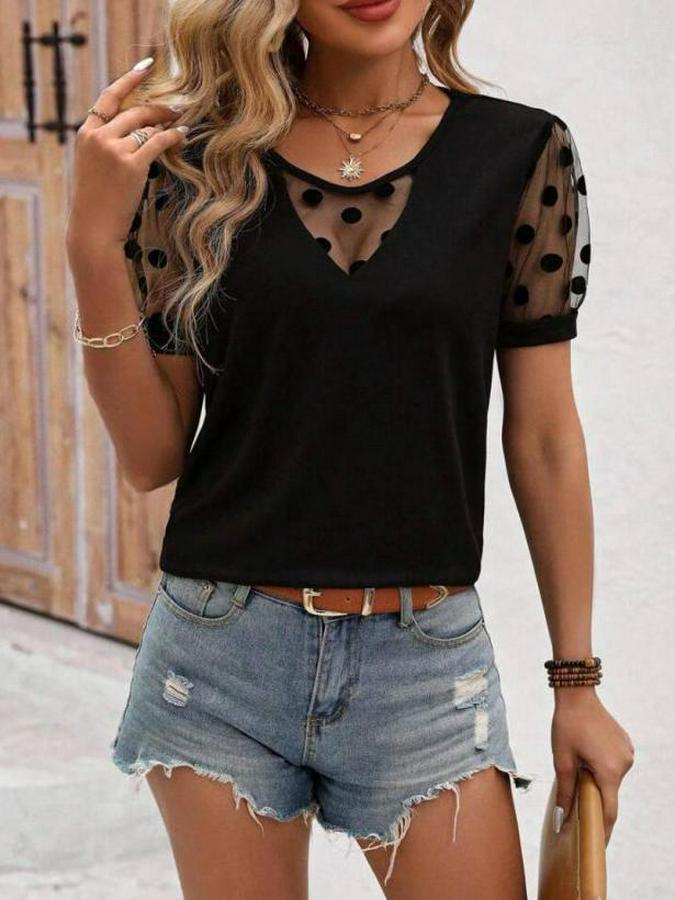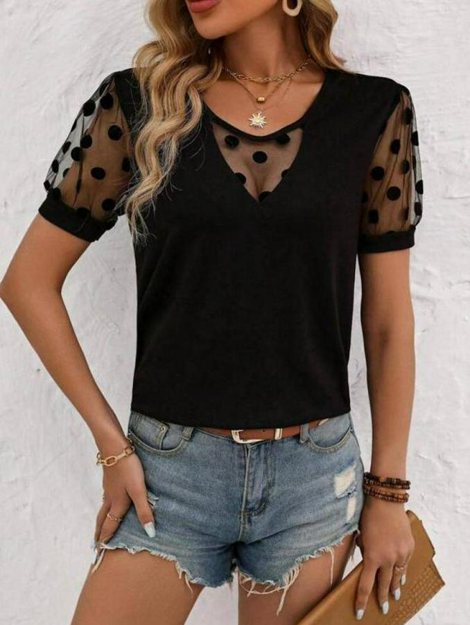 AnasayfaTüm ÜrünlerÜst GiyimBluz & TunikBluzPuantiyeli Tül Koy Detay Bluz