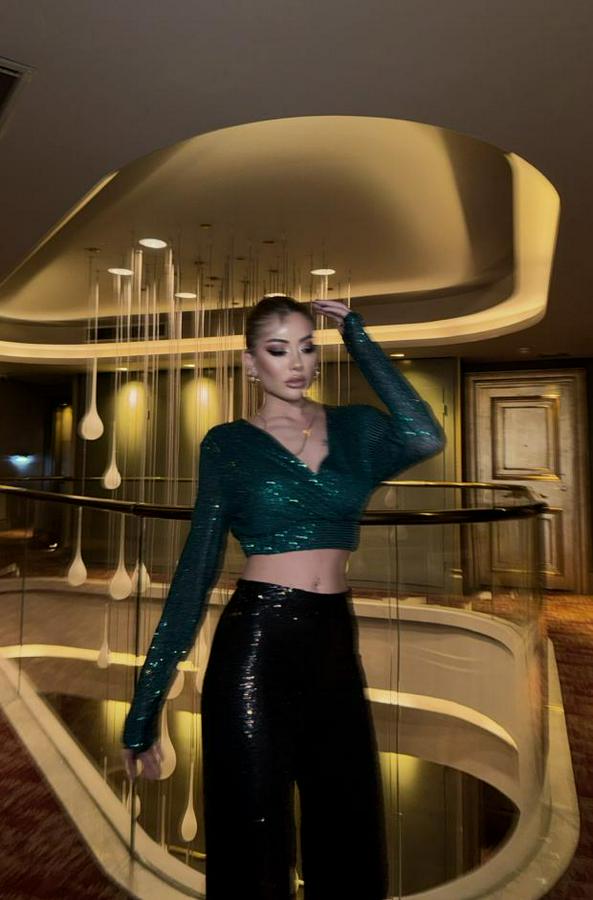 PULLU CROP KRUVAZE BLUZ - Zümrüt