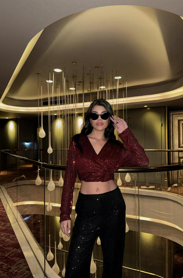 PULLU CROP KRUVAZE BLUZ - Bordo