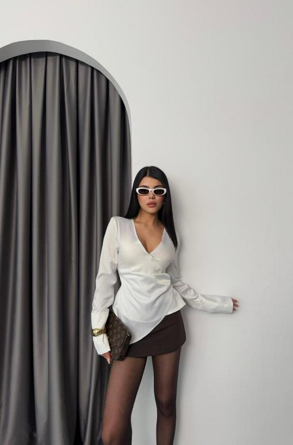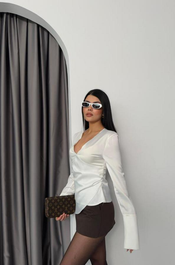SATEN ANVELOP BLUZ MANŞET KOL - Beyaz