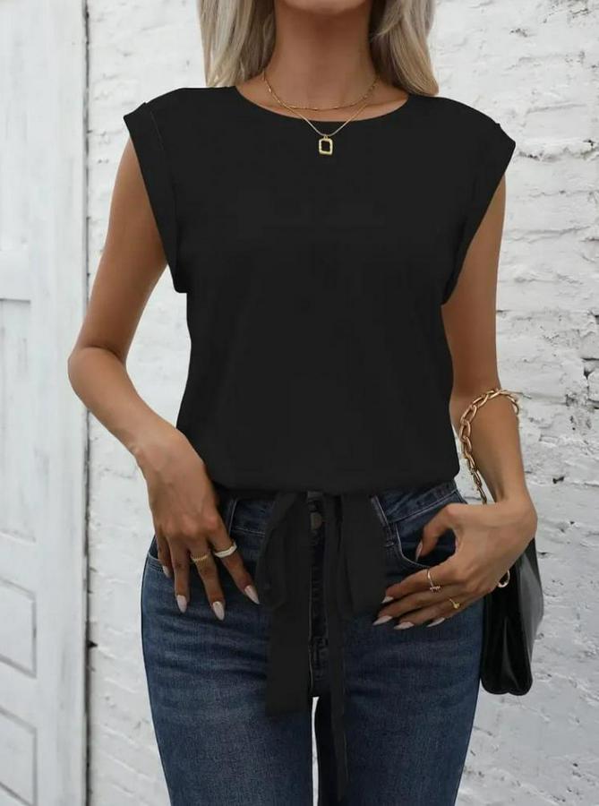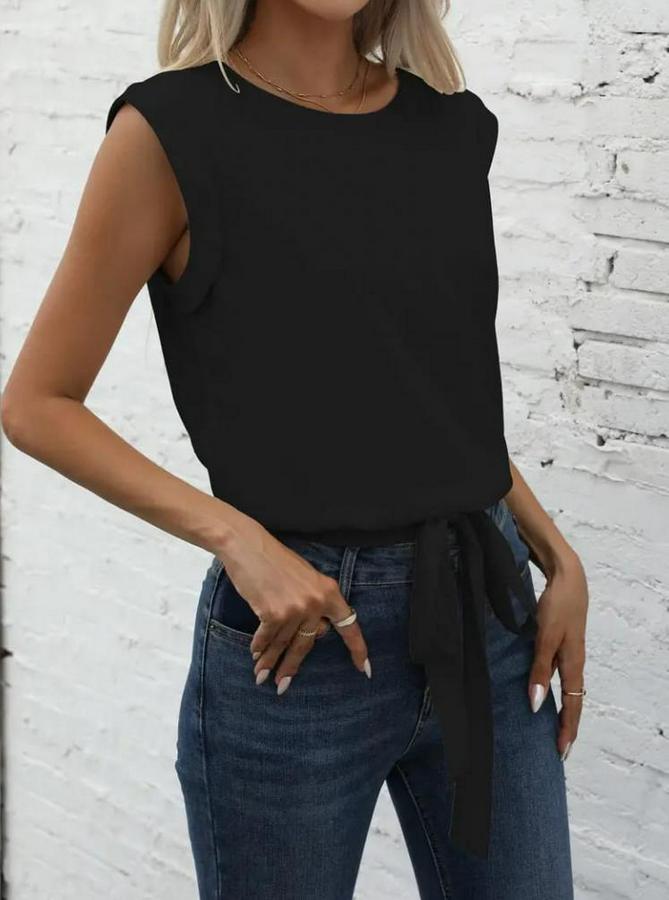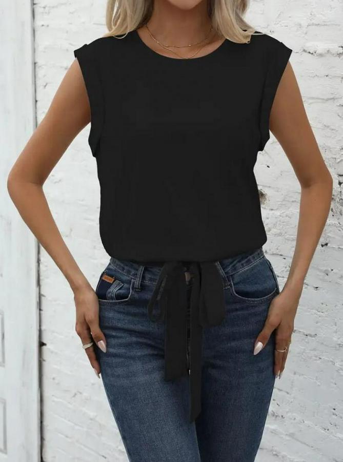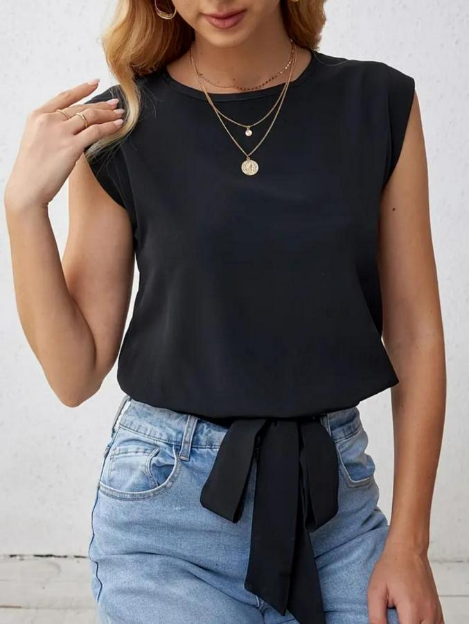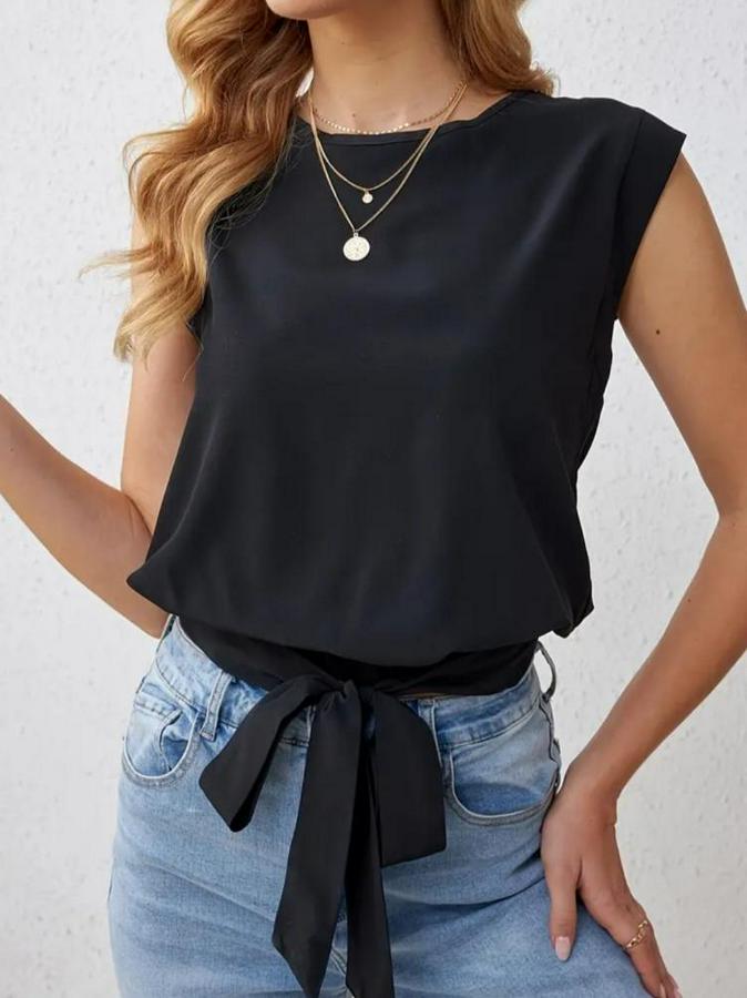 AnasayfaTüm ÜrünlerÜst GiyimBluz & TunikBluzSıfır Kol Etek Ucu Bağlama Detay Ithal Krep Bluz