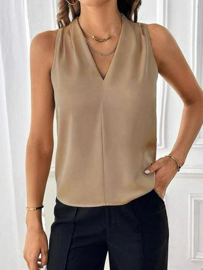 AnasayfaTüm ÜrünlerÜst GiyimBluz & TunikBluzSıfır Kol V Yaka Viskon Kumaş Bluz