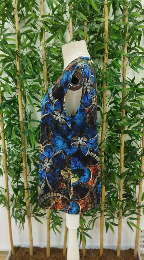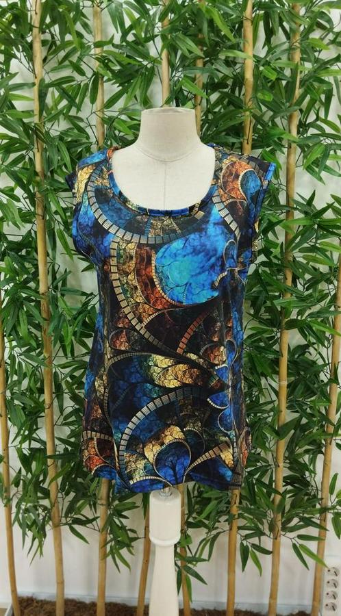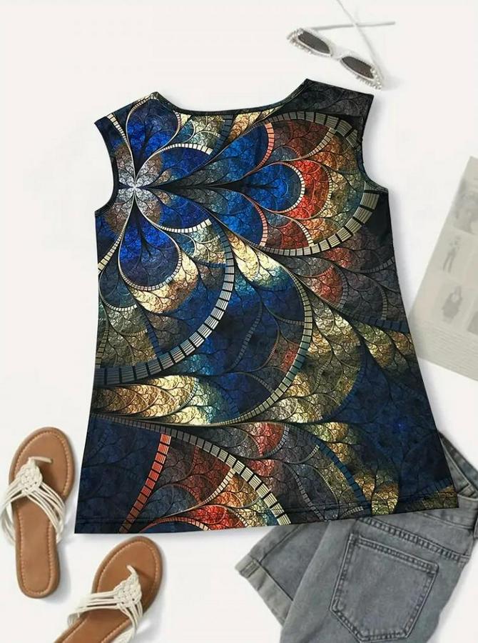 AnasayfaTüm ÜrünlerÜst GiyimBluz & TunikBluzSıfır Kol Yuvarlak Yaka Karışık Renkli Baskılı Süprem Bluz