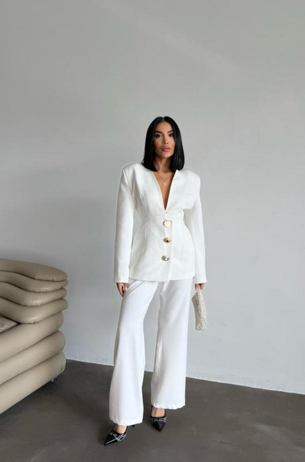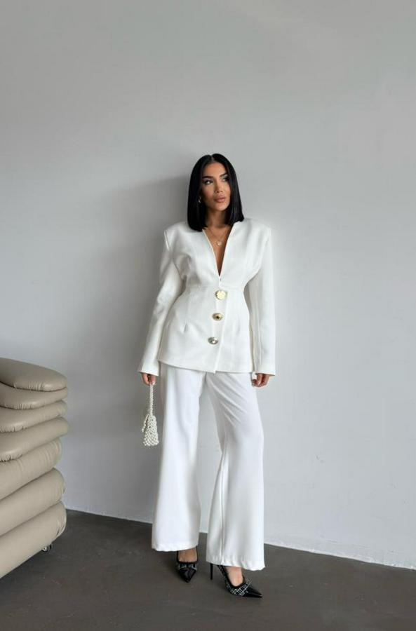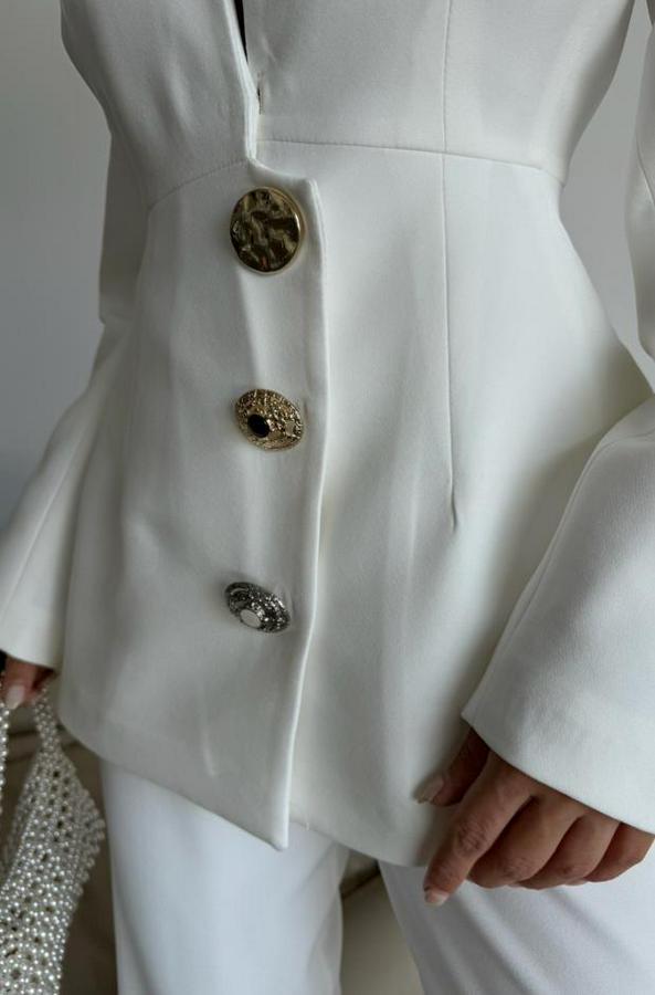 TASARIM CEKET-PANTOLON TAKIM METAL DÜĞME DETAYLI - Beyaz
