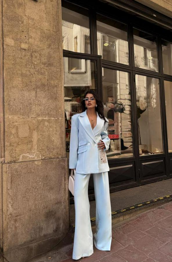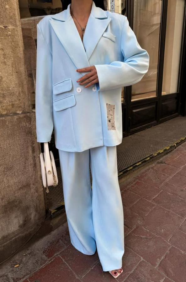 TASARIM ETİKET DETAYLI CEKET - PANTOLON TAKIM - Bebe Mavi