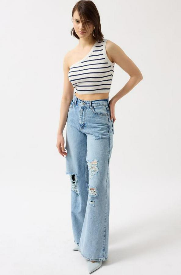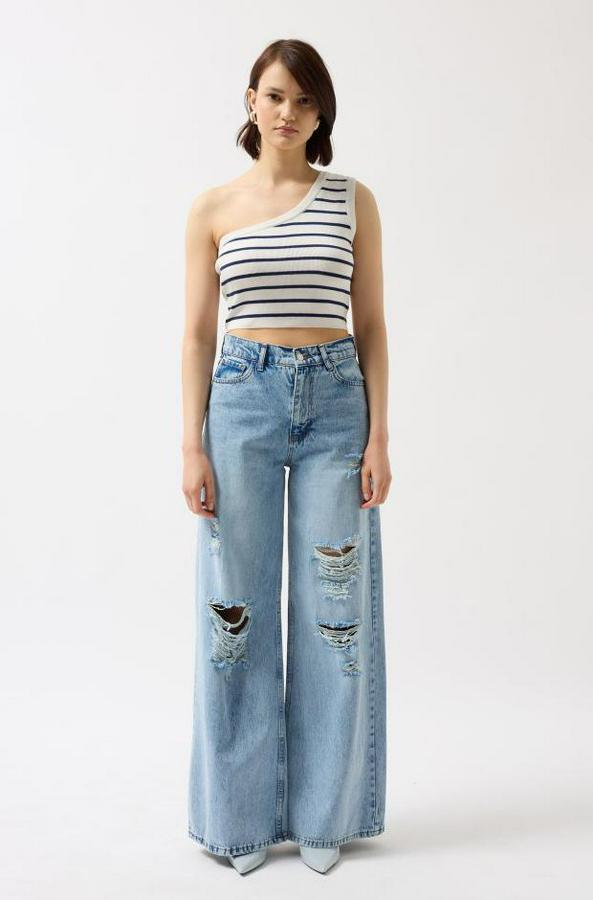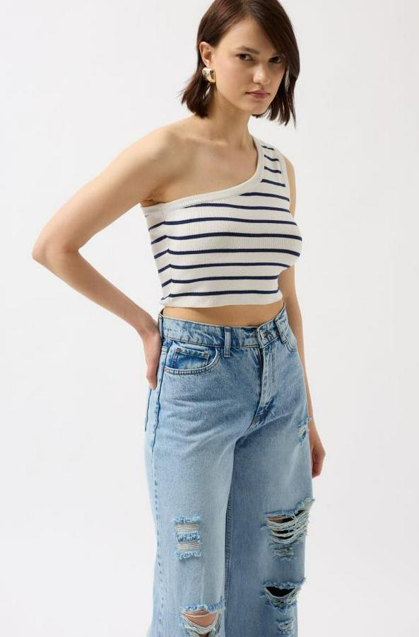 Tek Omuz Çizgili Crop