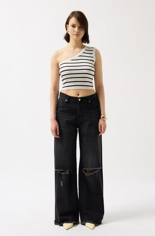 Tek Omuz Çizgili Crop