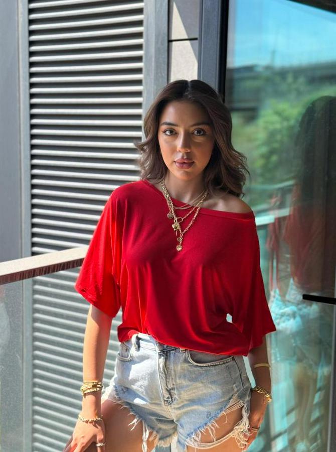 Tek Omuzu Açık Kısa Kollu Salaş Viskon Bluz