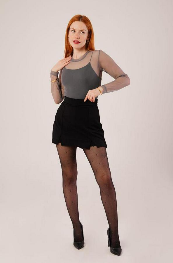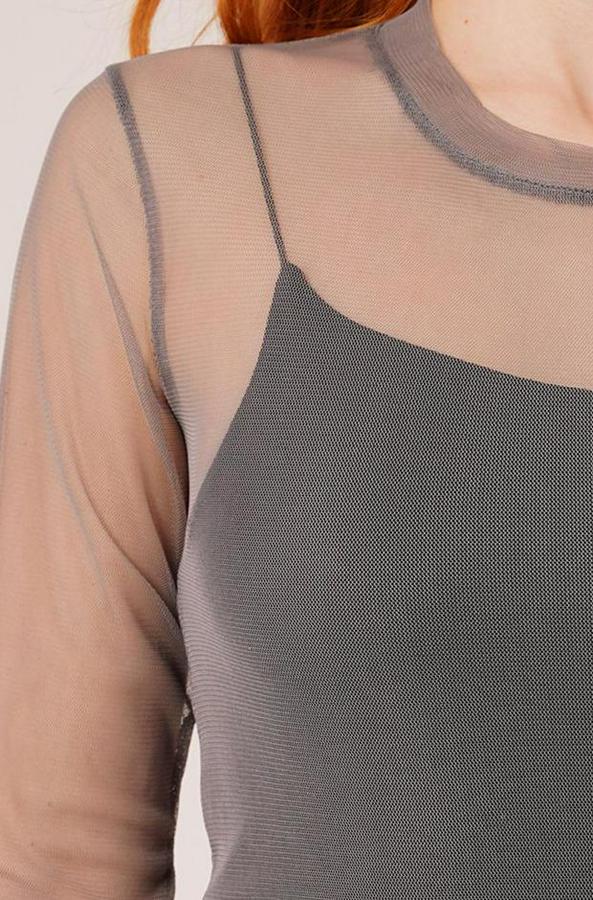 Transparan Gri Tül Basic Bluz