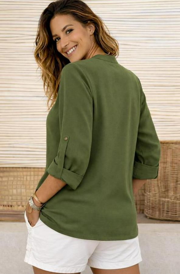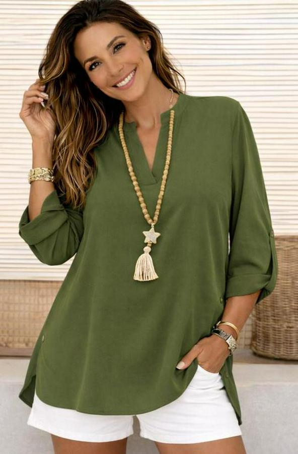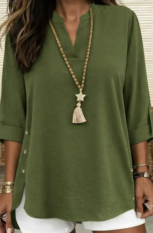 AnasayfaTüm ÜrünlerÜst GiyimBluz & TunikBluzTruvakar Kol Hakim Yakalı Yandan Düğme Detaylı Aerobin Bluz