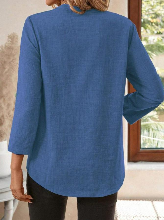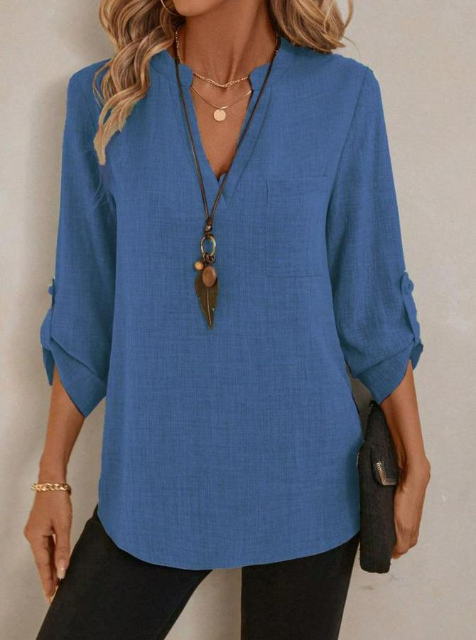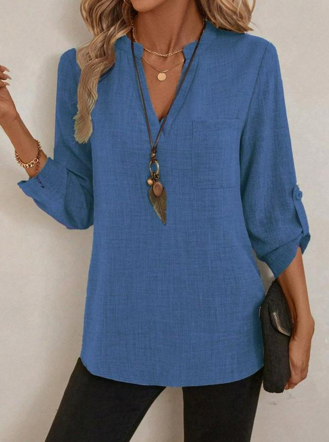 AnasayfaTüm ÜrünlerÜst GiyimBluz & TunikBluzTruvakar Kol V Yakalı Keten Bluz