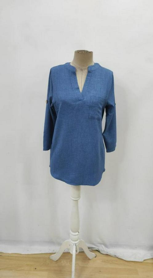 Kadın Truvakar Kol V Yakalı Keten Bluz