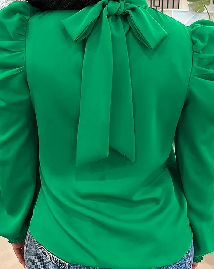 Kadın Uzun Kollu Balıkçı Yaka Arkadan Bağlamalı Omuzlardan Balon Ithal Krep Bluz