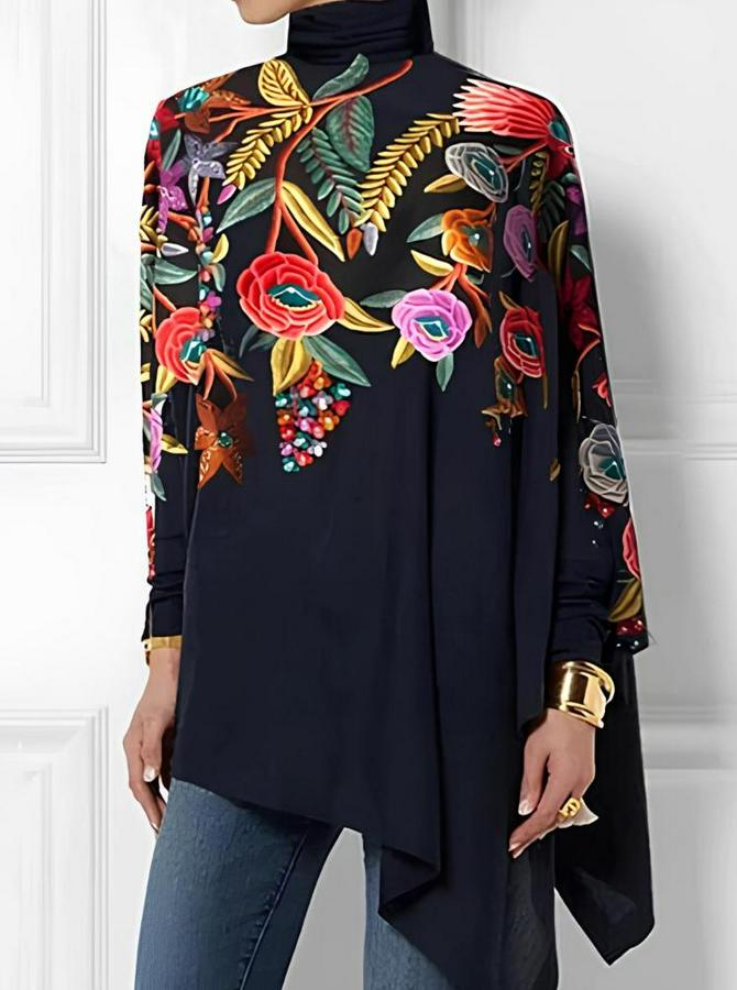 AnasayfaTüm ÜrünlerÜst GiyimBluz & TunikBluzUzun Kollu Balıkçı Yaka Asimetrik Kesim Mikro Bluz