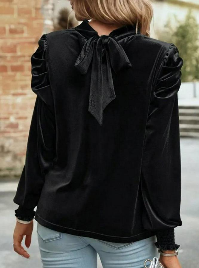 Kadın Uzun Kollu Balıkçı Yaka Damla Detaylı Kadife Bluz