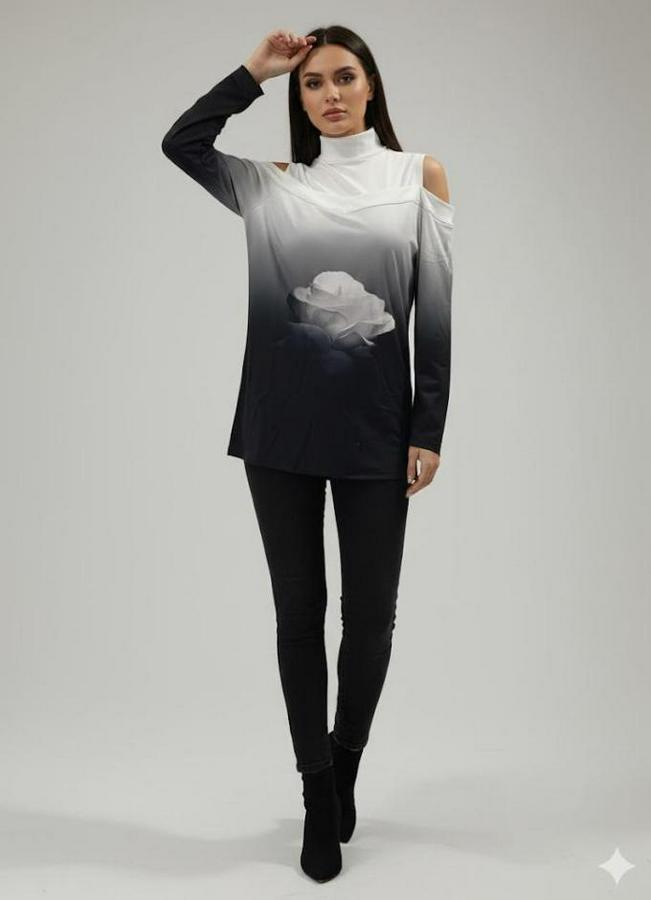 Uzun Kollu Balıkçı Yaka Omuz Dekoltesi Detaylı Bluz