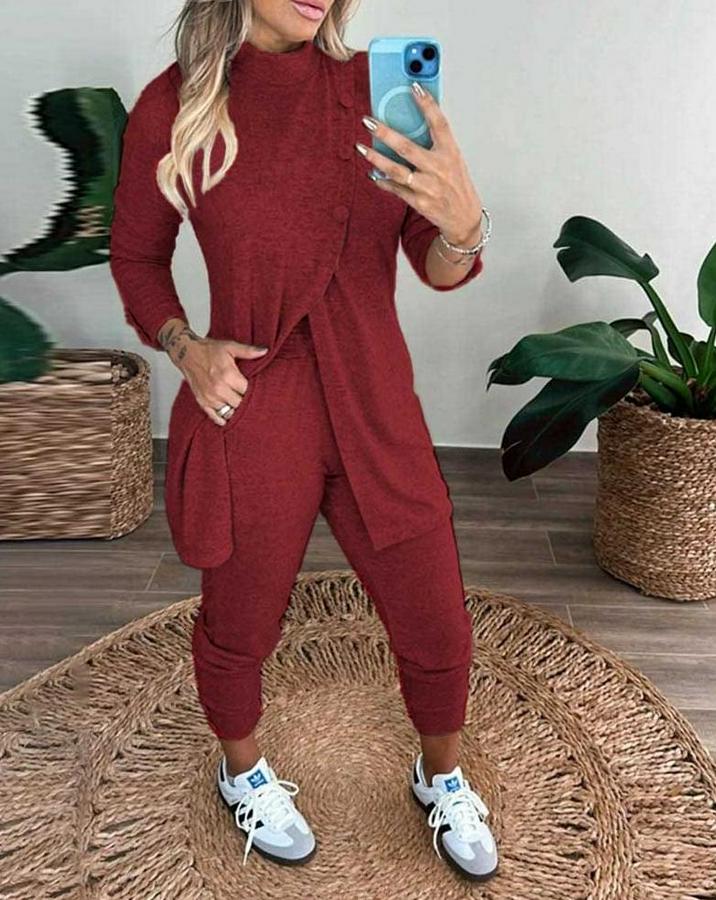 AnasayfaTüm ÜrünlerÜst GiyimBluz & TunikBluzUzun Kollu Balıkçı Yaka Önden Düğmeli Bluz Ve Pantolon Yumoş Ikili Takım
