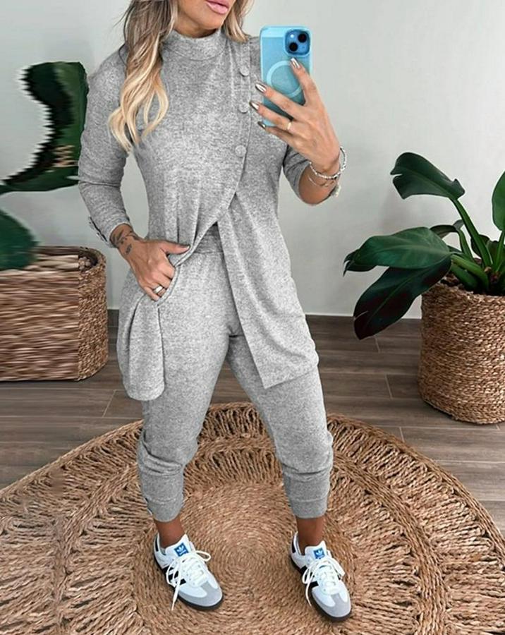 AnasayfaTüm ÜrünlerÜst GiyimBluz & TunikBluzUzun Kollu Balıkçı Yaka Önden Düğmeli Bluz Ve Pantolon Yumoş Ikili Takım