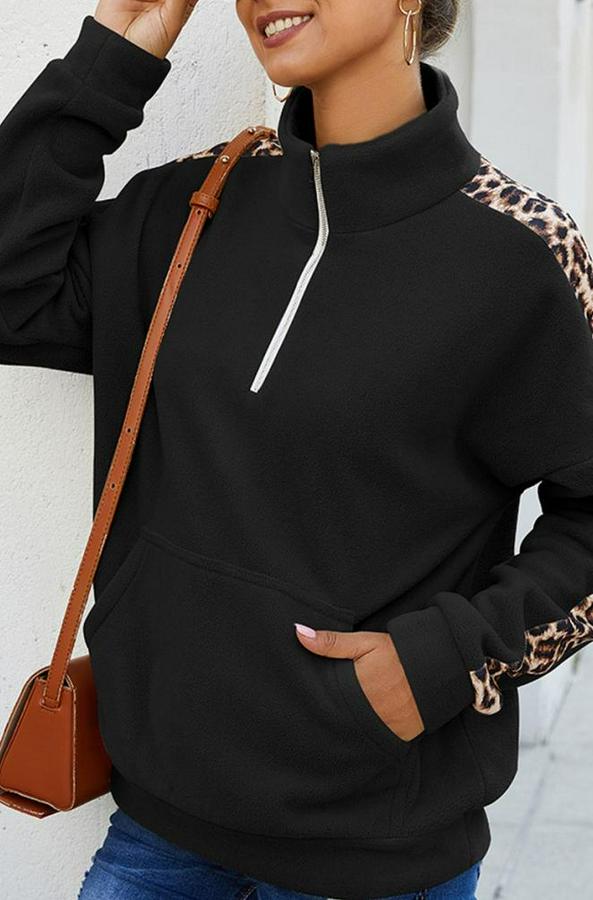 Uzun Kollu Balıkçı Yaka Önden Fermuarlı Polar Bluz