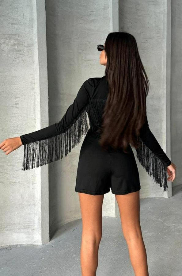 Kadın Uzun Kollu Balıkçı Yaka Püsküllü Kuşaklı Ithal Krep Tulum