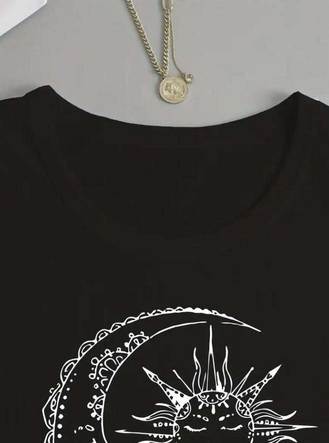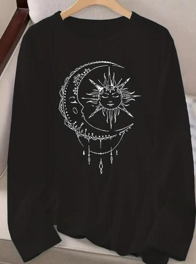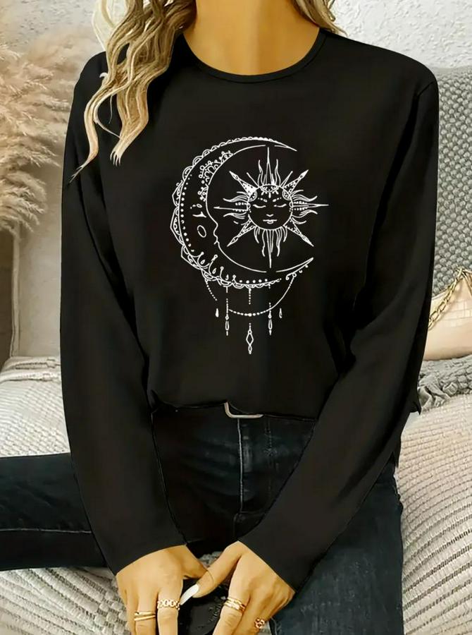 AnasayfaTüm ÜrünlerÜst GiyimBluz & TunikBluzUzun Kollu Bisiklet Yaka Ay Baskılı Viskon Bluz