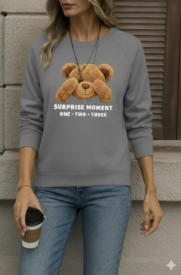 AnasayfaTüm ÜrünlerÜst GiyimBluz & TunikBluzUzun Kollu Bisiklet Yaka Ayıcık Desenli Viskon Iki Iplik Bluz