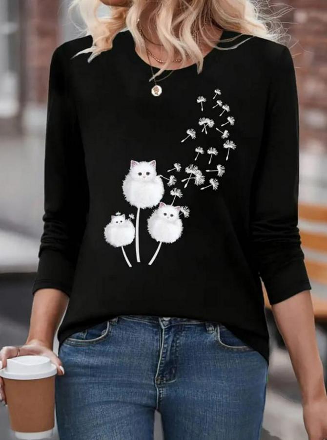 Kadın Uzun Kollu Bisiklet Yaka Baskılı Iki Iplik Bluz