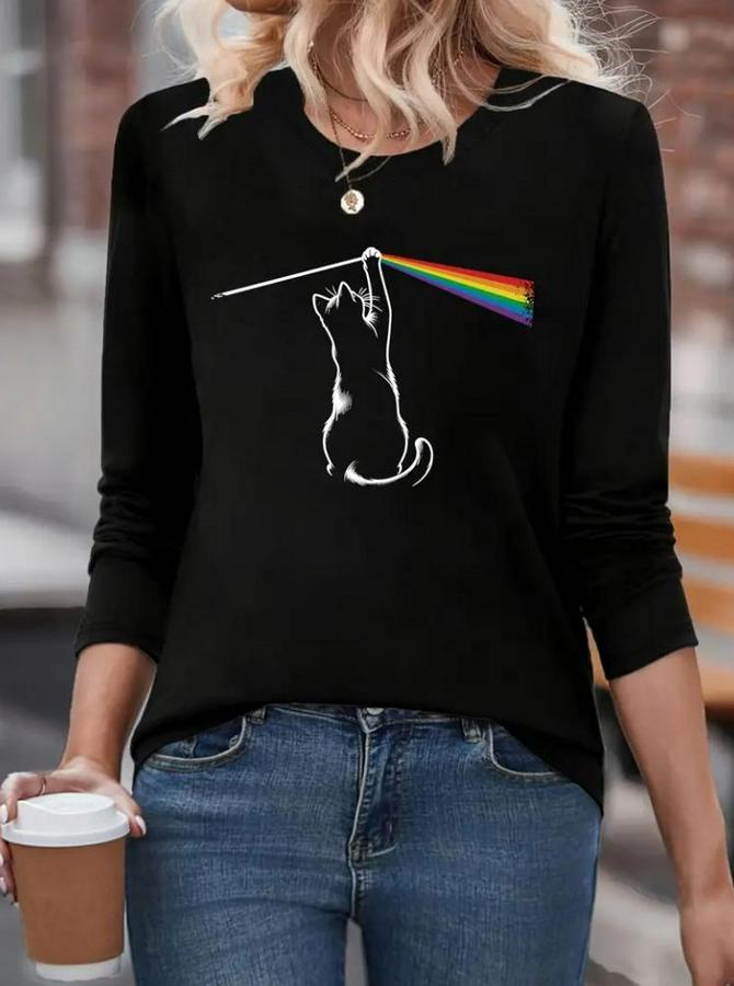 Kadın Uzun Kollu Bisiklet Yaka Baskılı Iki Iplik Bluz