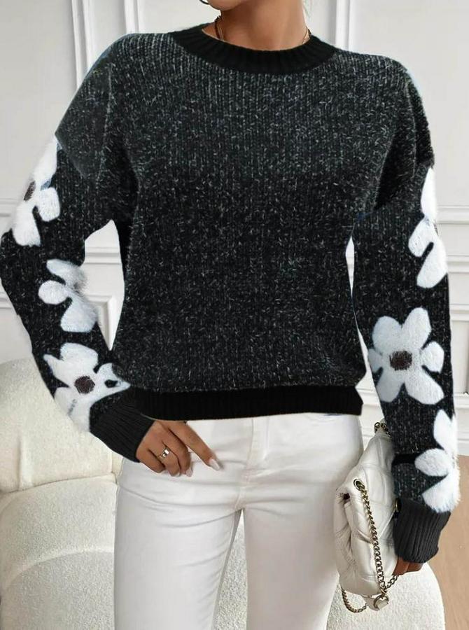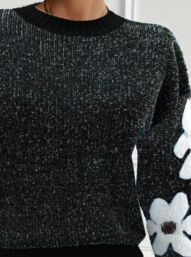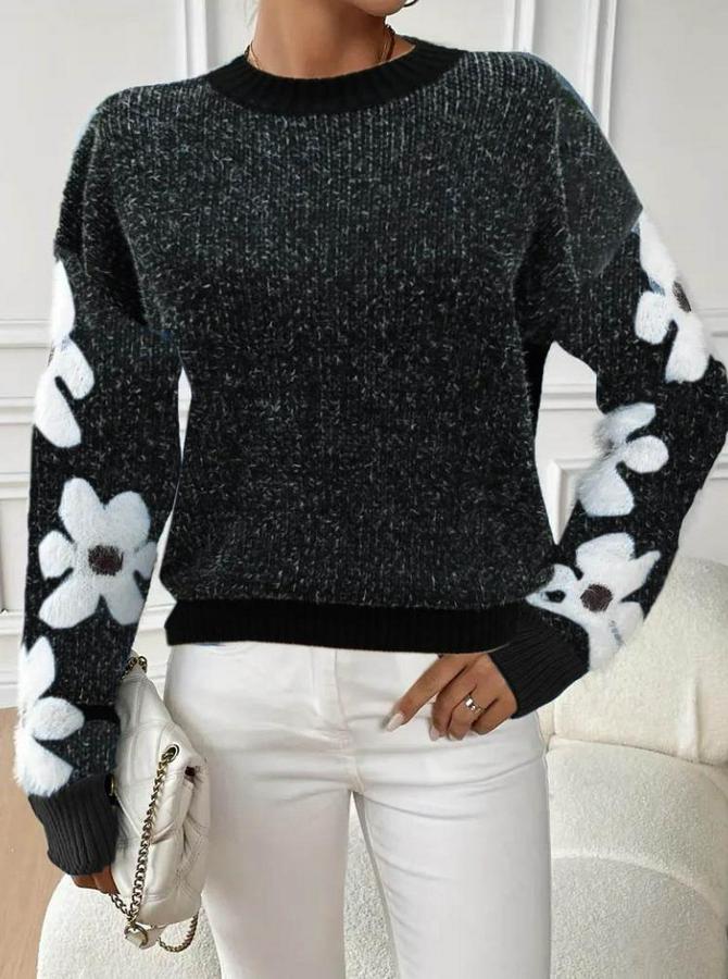 AnasayfaTüm ÜrünlerÜst GiyimBluz & TunikBluzUzun Kollu Bisiklet Yaka Çiçek Desenli Triko Bluz