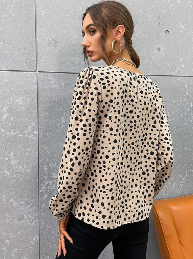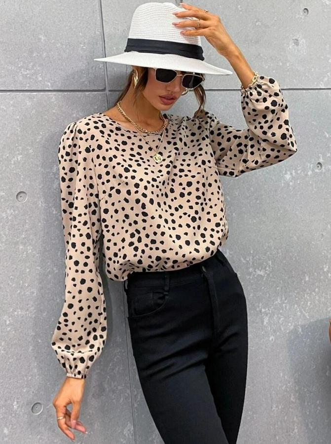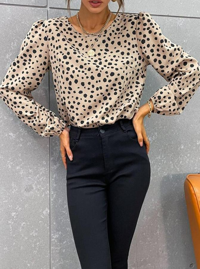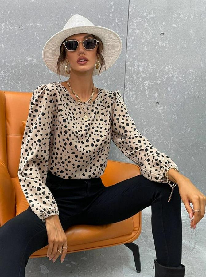 AnasayfaTüm ÜrünlerÜst GiyimBluz & TunikBluzUzun Kollu Bisiklet Yaka Desenli Bluz