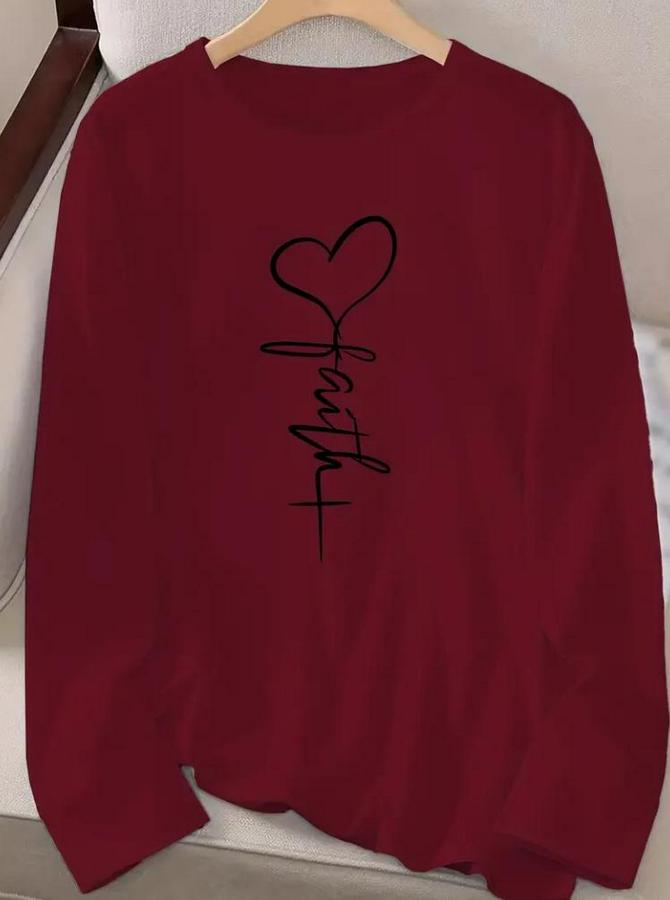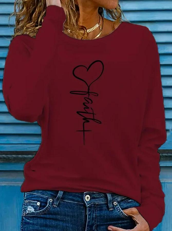 AnasayfaTüm ÜrünlerÜst GiyimBluz & TunikBluzUzun Kollu Bisiklet Yaka Faith Baskılı Viskon Bluz