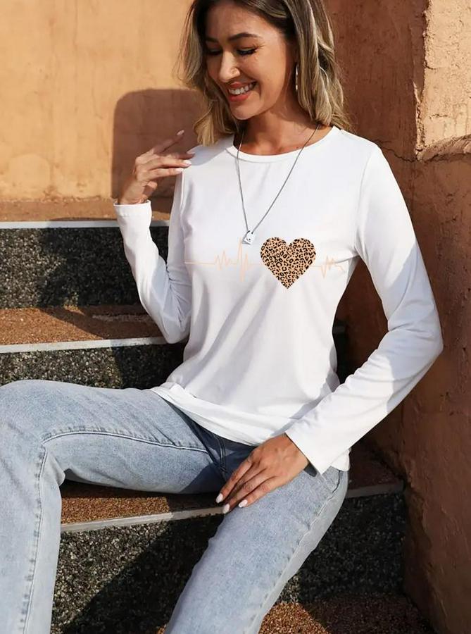 AnasayfaTüm ÜrünlerÜst GiyimBluz & TunikBluzUzun Kollu Bisiklet Yaka Kalp Desenli Bluz