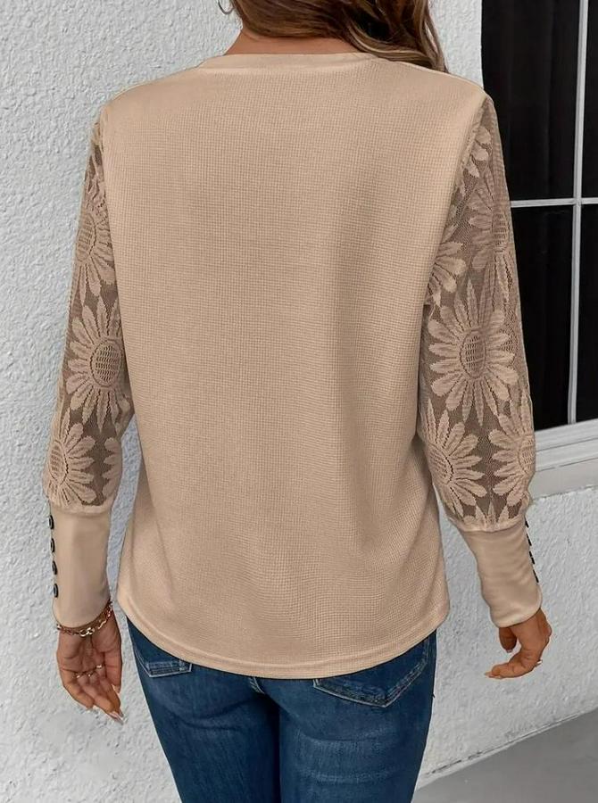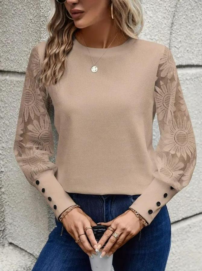 AnasayfaTüm ÜrünlerÜst GiyimBluz & TunikBluzUzun Kollu Bisiklet Yaka Kolları Çiçekli Waffle Bluz