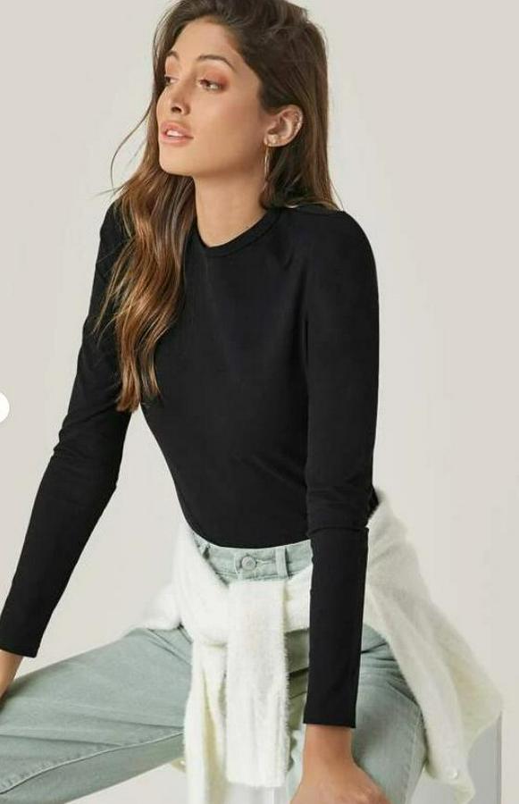 AnasayfaTüm ÜrünlerÜst GiyimBluz & TunikBluzUzun Kollu Bisiklet Yaka Süprem Bluz