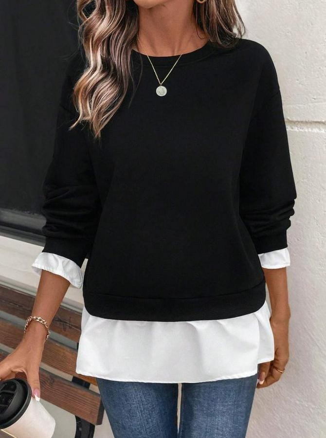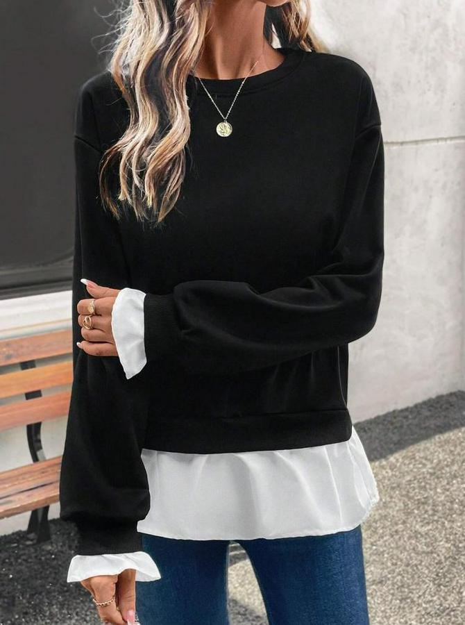 AnasayfaTüm ÜrünlerÜst GiyimBluz & TunikBluzUzun Kollu Bisiklet Yaka Viskon Iki Iplik Ve Etek Ucu Trikoton Bluz