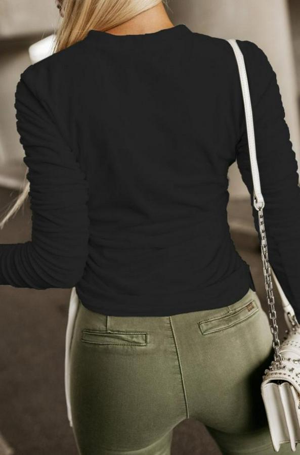 AnasayfaTüm ÜrünlerÜst GiyimBluz & TunikBluzUzun Kollu Bisiklet Yaka Yanları Ve Kolları Büzgülü Kadife Bluz
