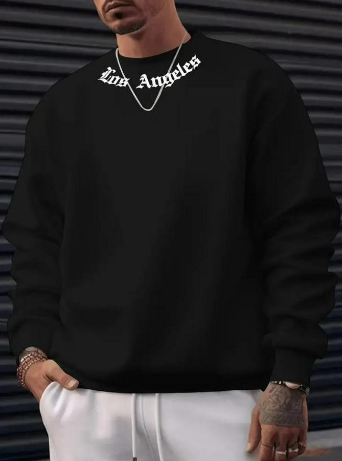 Erkek Uzun Kollu Bisiklet Yaka Yazı Detaylı Iki Iplik Bluz