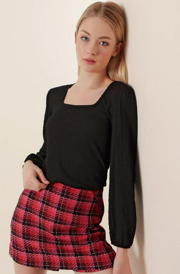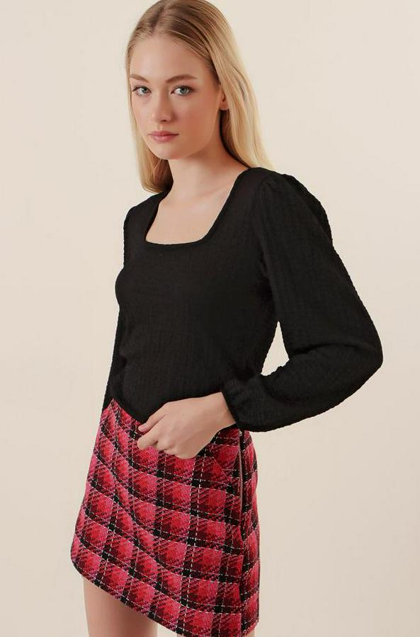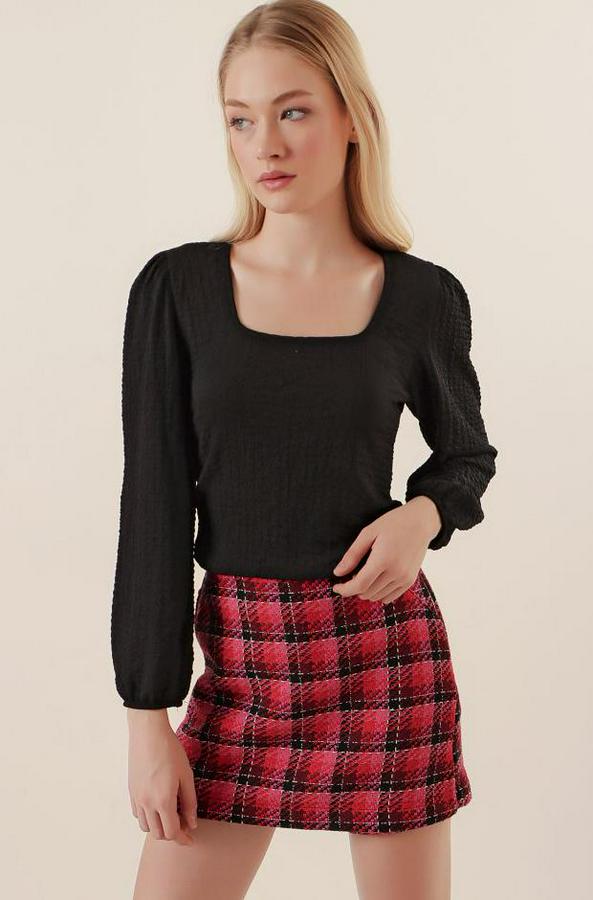 0442 Uzun Kollu Bluz - Siyah