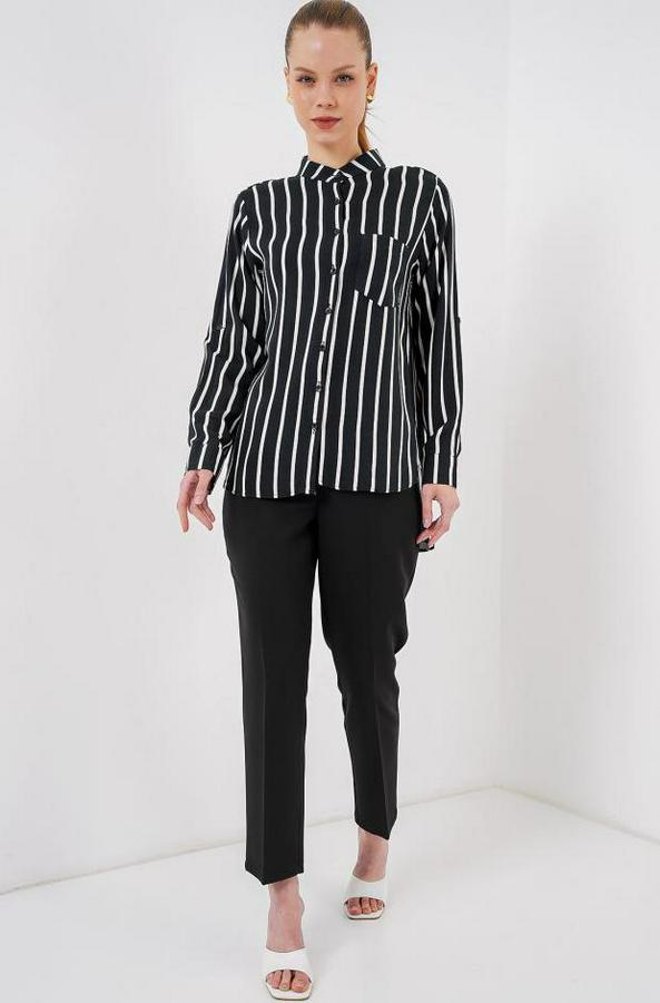 AnasayfaTüm ÜrünlerÜst GiyimBluz & TunikBluzUzun Kollu Çizgili Gömlek 20283