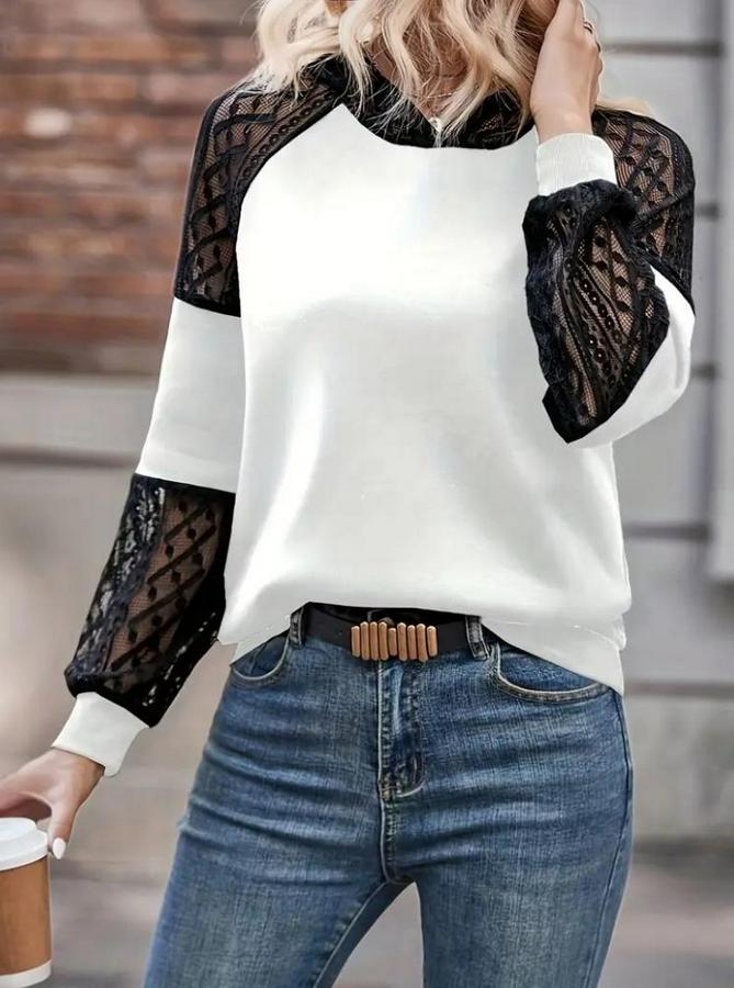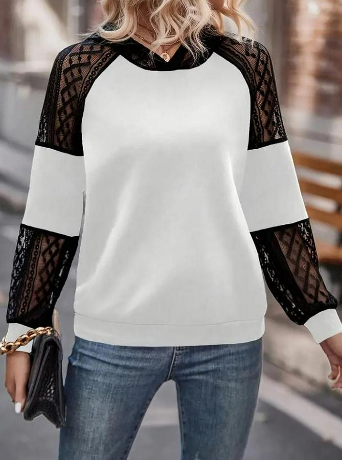 Kadın Uzun Kollu Dantelli Kapşonlu Viskon Iki Iplik Bluz