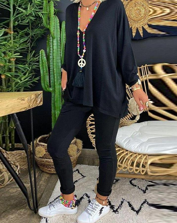 AnasayfaTüm ÜrünlerÜst GiyimBluz & TunikBluzUzun Kollu Derin V Yaka Ön Kısa Arka Uzun Viskon Bluz