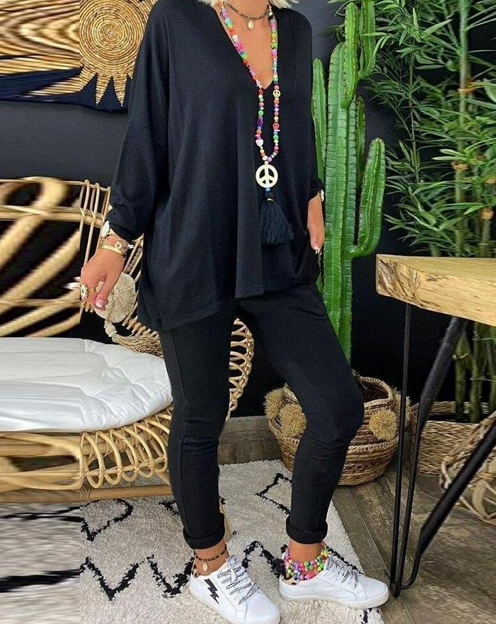Uzun Kollu Derin V Yaka Ön Kısa Arka Uzun Viskon Bluz